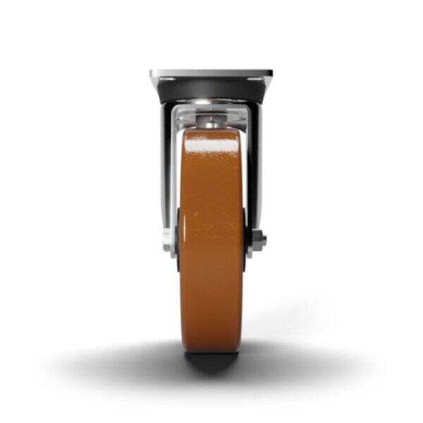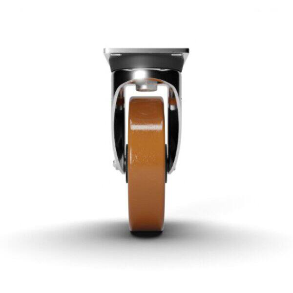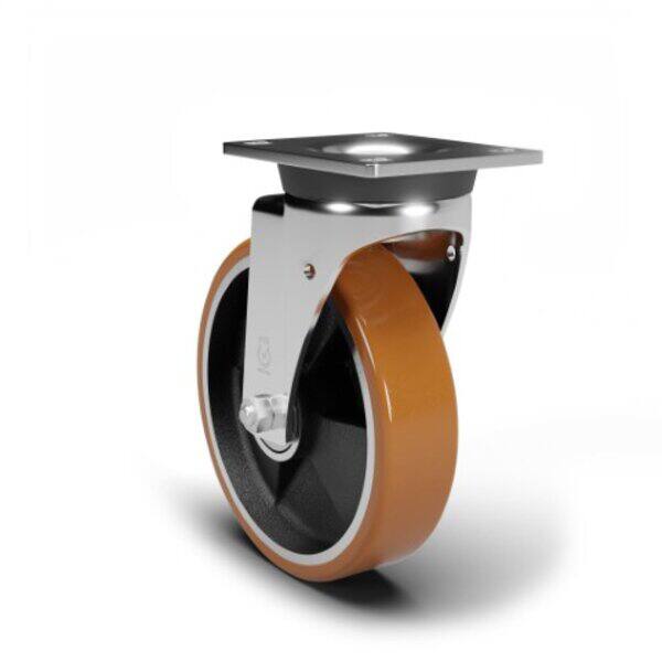 In acciaio stampato zinco-cromato, di forte spessore, rotante su doppia corona di sfere alloggiate in ralle d’acciaio temprato, con piastra. Assemblaggio con dado autobloccante.