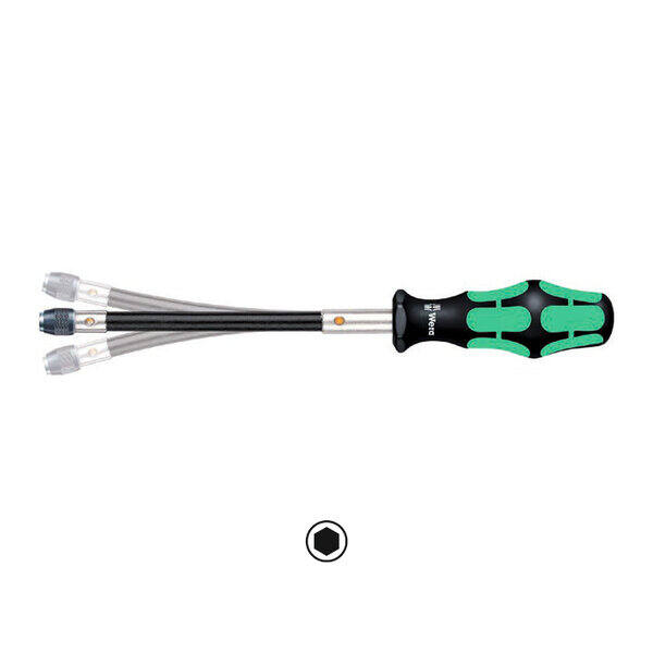 Porta-inserti con gambo flessibile di alta qualità della Wera. Impugnatura Kraftform multicomponente per lavorare in maniera veloce senza affaticare la mano. Kraftform Plus: le zone dure garantiscono un’elevata velocità di lavoro, mentre quelle morbide permettono una trasmissione di coppie elevate. Con pinza a cambio rapido per un cambio ultrarapido degli inserti. La protezione antirotolamento esagonale evita che l'utensile rotoli via. Per inserti esagonali da 1/4" secondo DIN ISO 1173-C 6,3.
