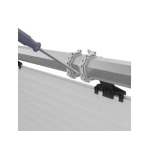 • Semplice. 3 pezzi: 2 anelli e 1 snodo premontato. Si installa in poche mosse senza dover rimuovere il rullo avvolgitore e non richiede complicate regolazioni.