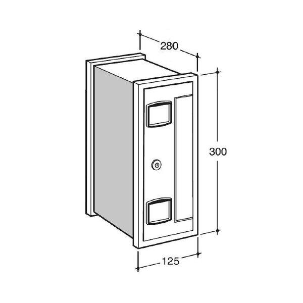 Apertura imbuca lettere 230×20 mm protetta da portina oscillante verso l’interno con ritorno a molla. Impostazione e ritiro anteriore della posta con possibilità di richiedere la cassetta a doppia faccia.