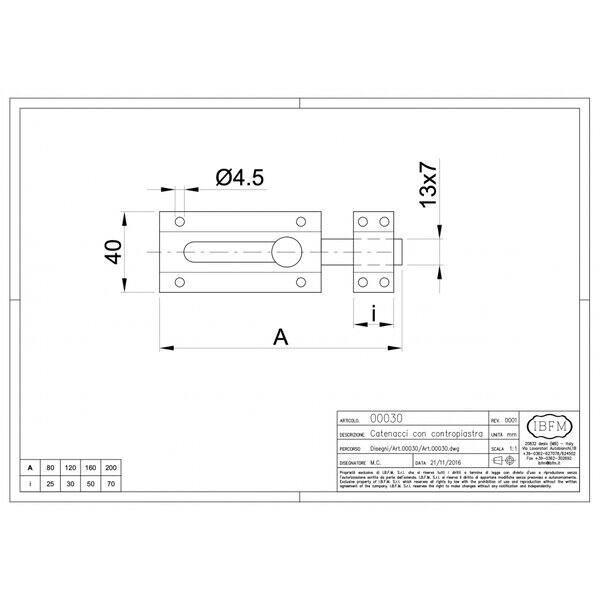 Catenaccio trasversale L 200 mm - Acciaio TROPICALIZZATO