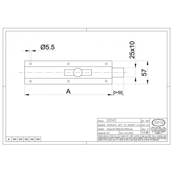 Catenaccio verticale L 400 mm - Acciaio BRONZATO