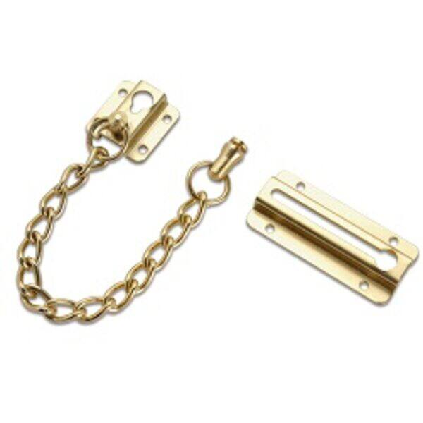 Catena di sicurezza per porte con catena in ferro a maglie saldate e piastrine con 4 fori per fissaggio.