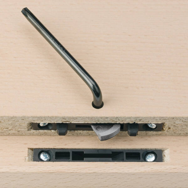 • Giunzione per mobili smontabile per fresata da 8 mm, fissata con viti