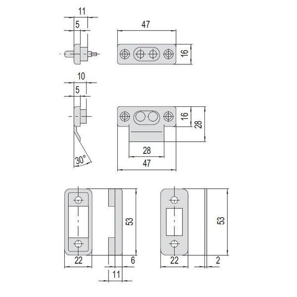 Coppia contatti in nylon per serrature elettriche completa di spessori: