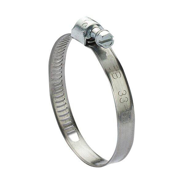 Fascetta stringitubo con nastro a bordi rialzati in acciaio INOX AISI 430 e testina in acciaio zincato