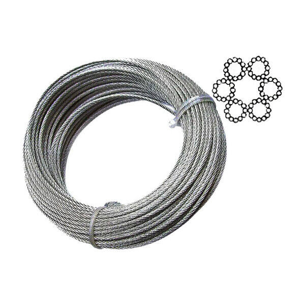 La fune commerciale zincata è composta da 72 fili di acciaio e da 7 anime tessili.