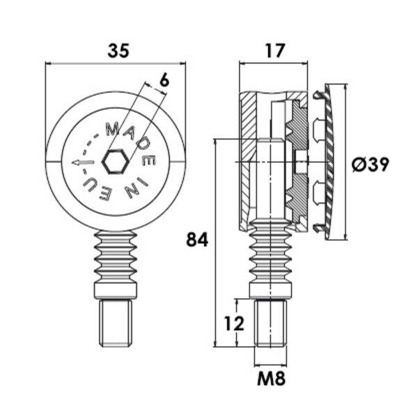Giunzione a cremagliera M8 senza tappo - ZINCATO