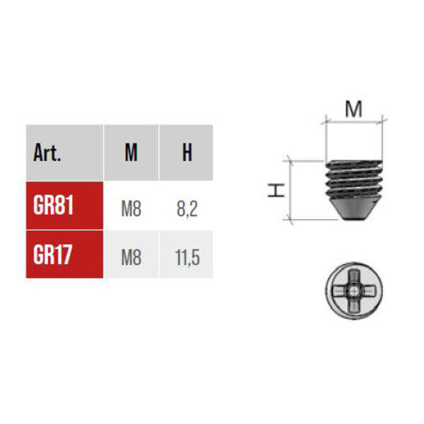 Grano conico TRIO M8 EXTRA x 8,2 mm