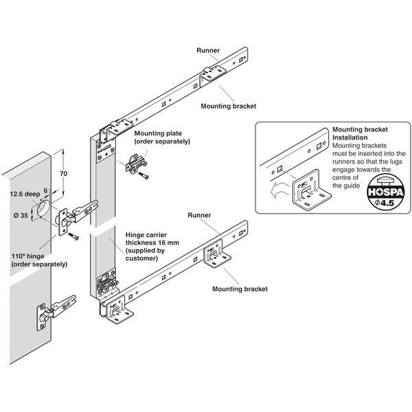 Guida per ante rientranti ACCURIDE 1319 - L 500 mm