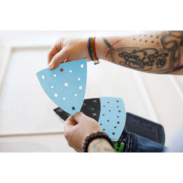 Sia che lavori in officina o in un luogo difficile da raggiungere, la levigatrice Delta a batteria DTSC 200 ti offre la massima libertà di movimento durante la levigatura. La luce LED integrata migliora la tua visione della superficie e aiuta a scoprire le imperfezioni già durante la levigatura. Grande, precisa fin nei minimi dettagli, anche vicino al bordo: la DTSC 200 è la tuttofare per le tue applicazioni. Grazie all'ampia superficie di contatto, è possibile raggiungere senza problemi anche i punti meno accessibili, senza dover cambiare utensile. Per la massima efficienza e superfici uniformi con un solo dispositivo.