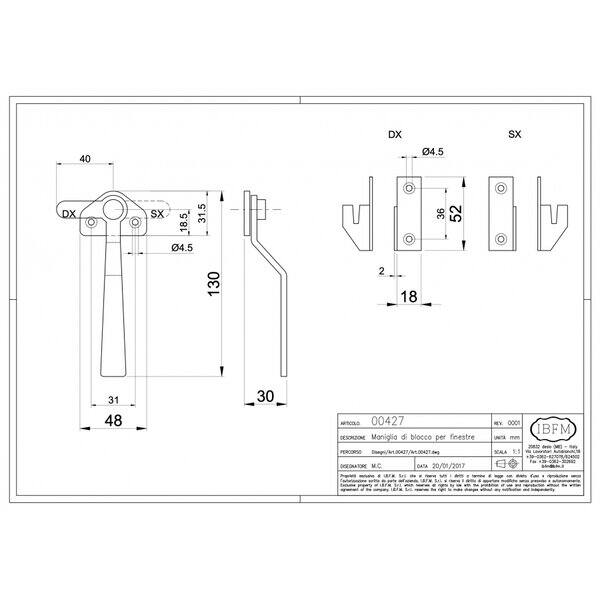 Maniglia di blocco per finestra DX