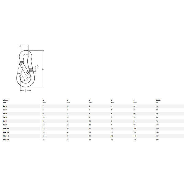 Moschettone Ø5 x L 50 mm - Acciaio Zincato
