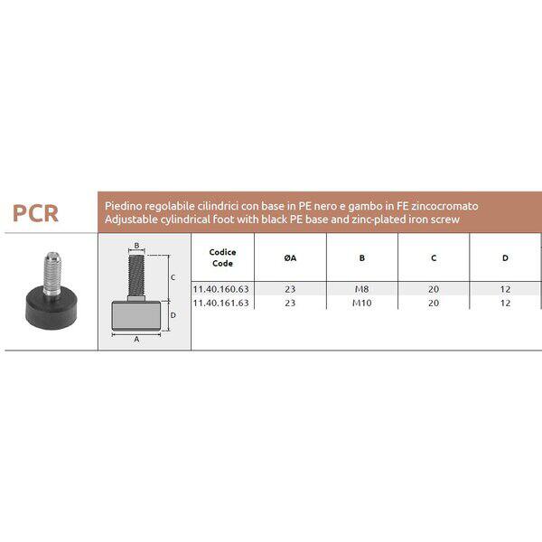 Piedino regolabile Ø23 e gambo M8 - Nero