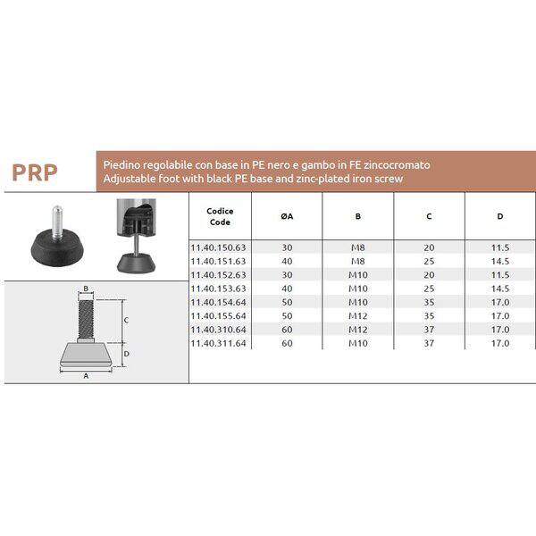 Piedino regolabile Ø50 con gambo M10 - Nero
