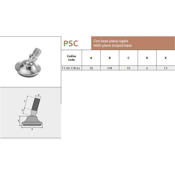 Piedino snodato orientabile Ø30 con perno M8 - Cromato