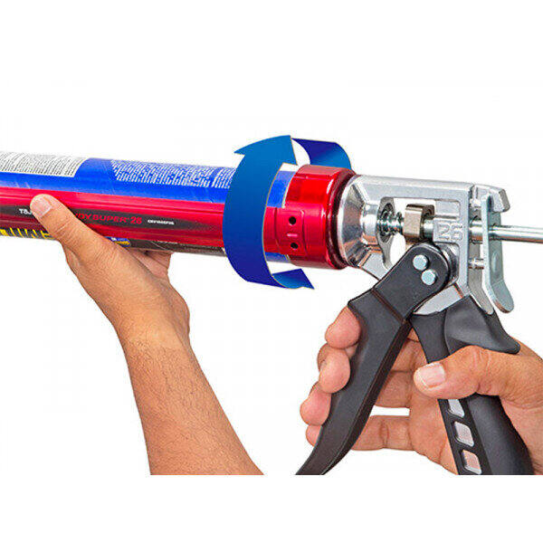 Pistola per silicone progettata per estrudere materiali molto duri, come polimeri o sigillanti acrilici, anche in cantiere durante i mesi freddi.