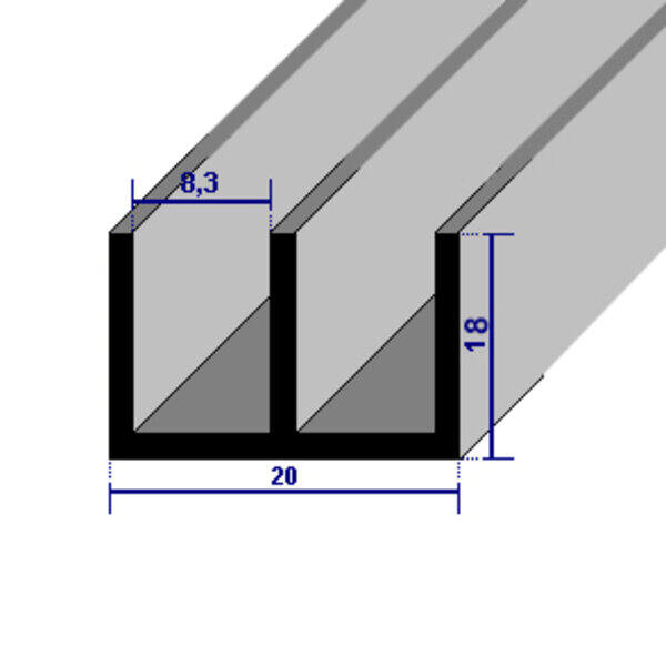 Profilo a "Doppia U" in alluminio 20x18 mm - Grezzo