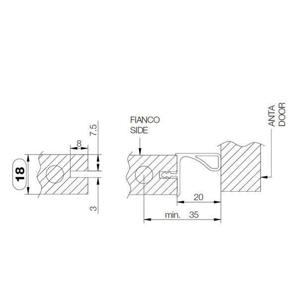 Profilo gola per pensile per fianchi spessore 18 mm