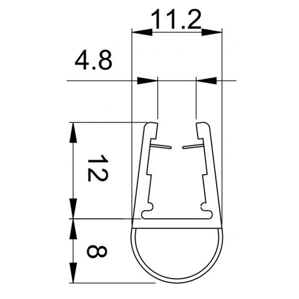 Profilo a palloncino per box doccia spessore vetro 6-8 mm, lunghezza 2500 mm.
