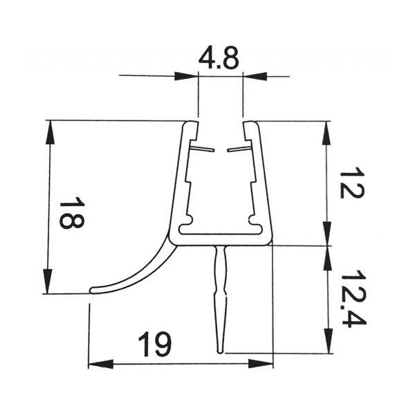 Profilo guarnizione con doppio deviatore per box doccia spessore vetro 6-8 mm, lunghezza 2500 mm