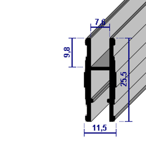 Profilo porta cristallo in alluminio - ARGENTO
