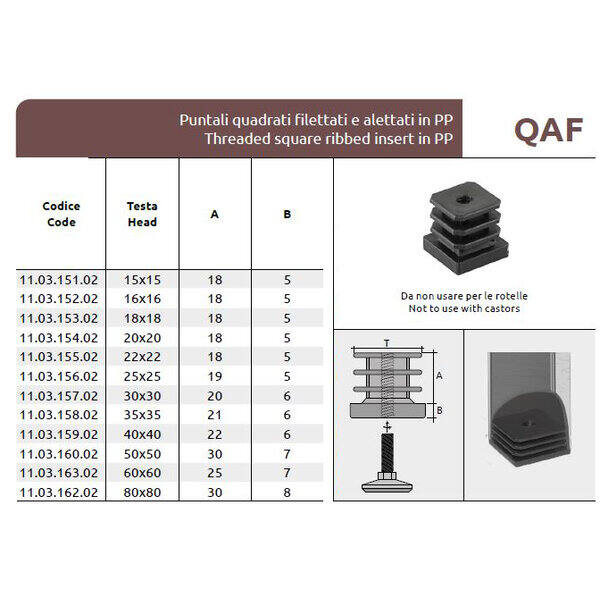 Puntale quadrato 25x25 mm filettato M10 - Nero