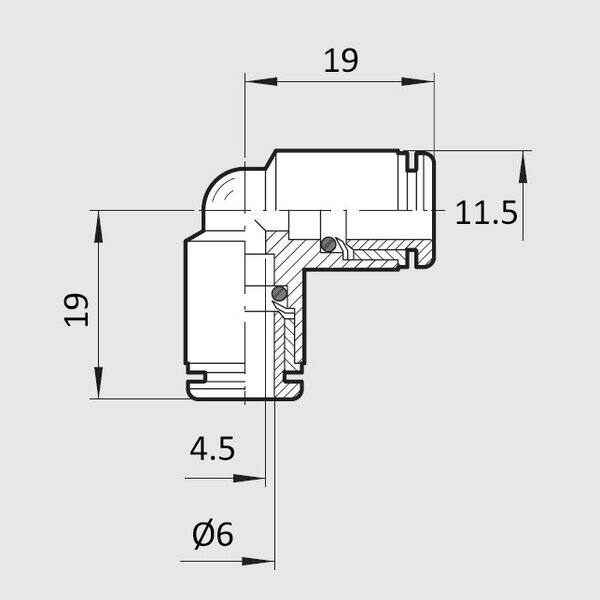 Raccordo a gomito Ø6 - Rif. RL4