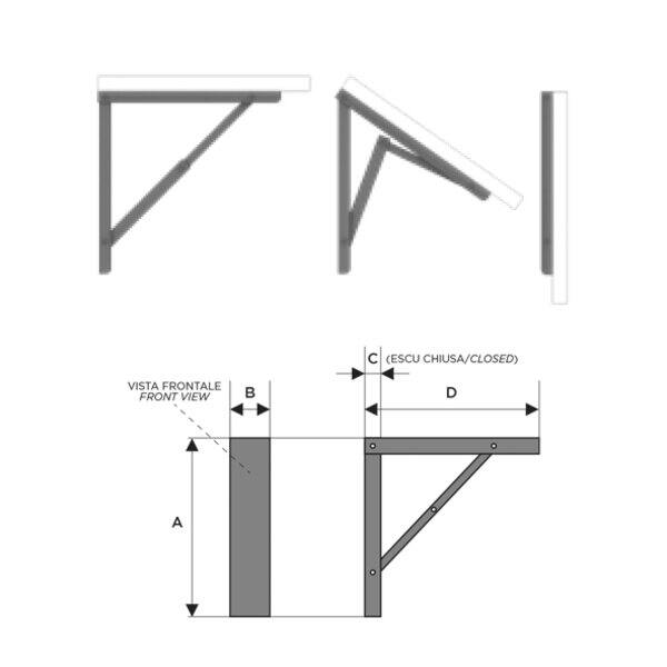 Consente di agganciare alla parete un ripiano, che in posizione di chiusura occupa un spazio ridotto, ma all’occorrenza si trasforma in un piano d’appoggio e può essere utilizzato come tavolo.