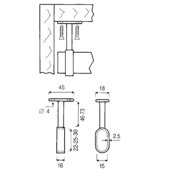 Reggitubo per tubo ovale 30x15 mm Aperto - NERO