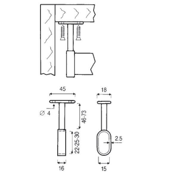 Reggitubo per tubo ovale 30x15 mm Chiuso - ARGENTO