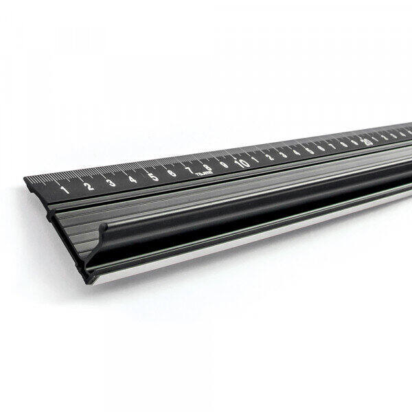 Riga con guida in acciaio inox austentico SUS301 per tagliare in sicurezza grazie alla base con gomma antiscivolo e al bordo rialzato per proteggere le dita.