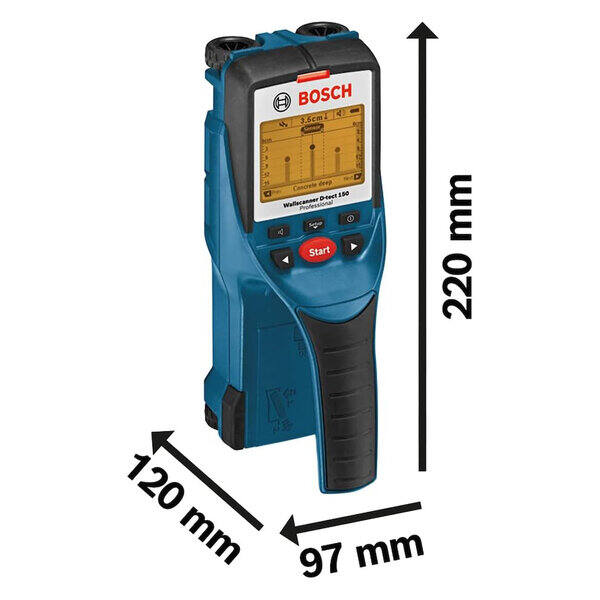 Bosch Professional Rilevatore D-tect 150 (profondità di rilevamento max. legno/cavi sotto tensione/tubi in plastica/metallo: 40/60/80/150 mm, confezione in cartone)