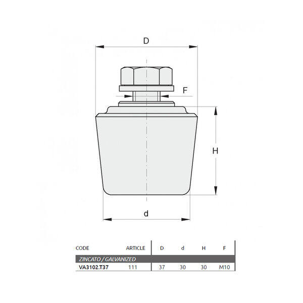 Cod. T37: Oliva conica grande adatta per profilo UPN 50x37
