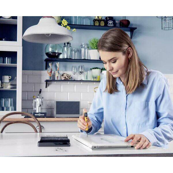 40 microinserti con sede esagonale da 4 mm | Lunghezza 28 mm: 5 x Phillips: PH000/ PH00/ PH0/ PH1/ PH2 4 x a taglio: 1/ 1,5/ 2/ 3 4 x esagonale: 1,5/ 2/ 2,5/ 3 4 x TORX®: T2/ T3/ T4/ T5 6 x TORX® con foro: TR6/ TR7/ TR8/ TR9/ TR10/ TR15 4 x Pentalob (profilo a stella a 5 lobi): P2/ P3/ P4/ P5 2 x chiave a tubo (dadi): 2/ 2,5 2 x quadrato: 1/ 2 4 x tipo Y (a tre punti): Y000/ Y00/ Y0/ Y1 2 x triangolo: 2/ 2,6 1 x tenditore: U2,6 1 x estrattore per schede SIM 1 x PH con perno (IPhone Standoff)