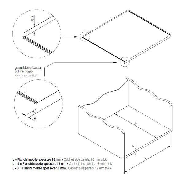 Sottolavello in alluminio, per pensile da 90