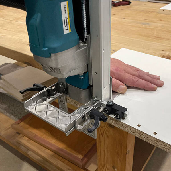 Appositamente progettata per forare pannelli per posizionare spine in legno per l'assemblaggio di pannelli.
