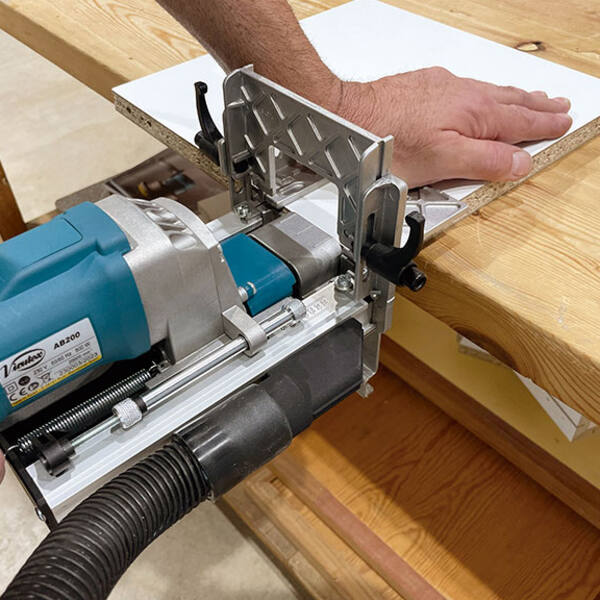 Dotata di guida micrometrica regolabile a qualsiasi altezza e angolazione. Posizionamento della macchina tramite fermi a scomparsa e riferimenti visivi a 32 mm (standard).