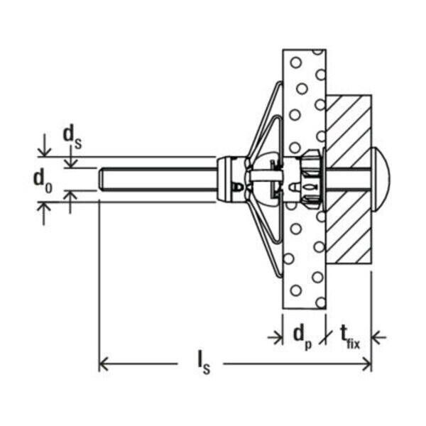 Tassello in acciaio, nylon e nylon rinforzato fibra-vetro per applicazioni su cartongesso, gessofibra e pannelli in legno.