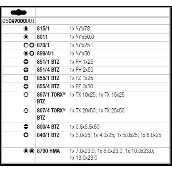 Set molto compatto da 21 elementi per avvitamento manuale o elettrico