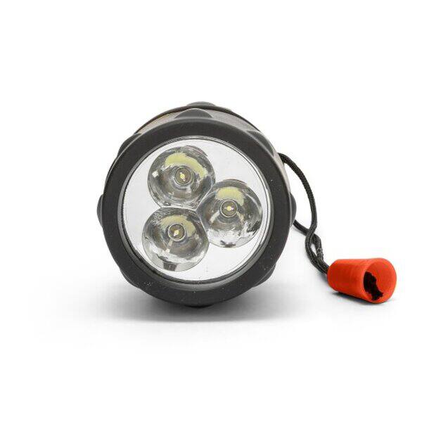 Comoda torcia LED tascabile con 3 led interni di ultima generazione, per un'illuminazione ad ampio raggio, fino a 30 metri, dalla potenza di 12 lumen.