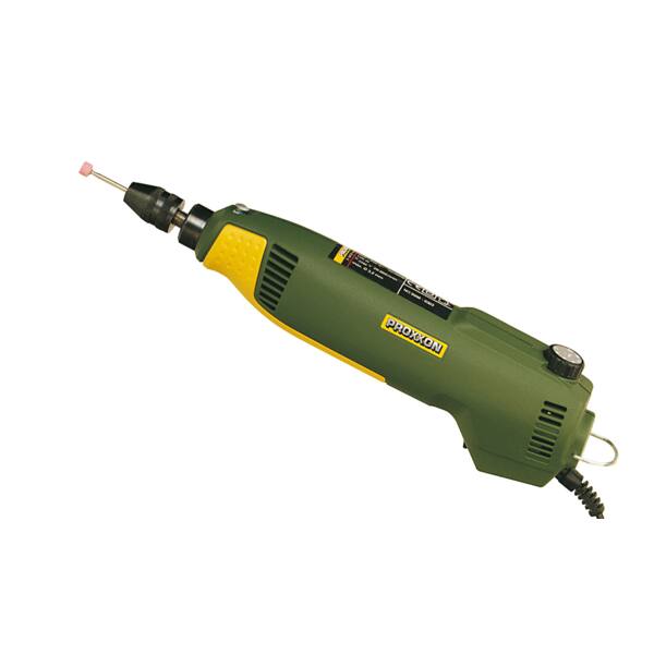 230V. 5.000 - 22.000 giri/min. 100W. Lunghezza 200mm. Peso 450g. Isolamento classe 2. Con mandrino autoserrante per steli da 0,3 - 3,2mm.
