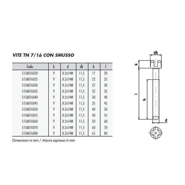 Vite TN con smusso 7/16 x 40