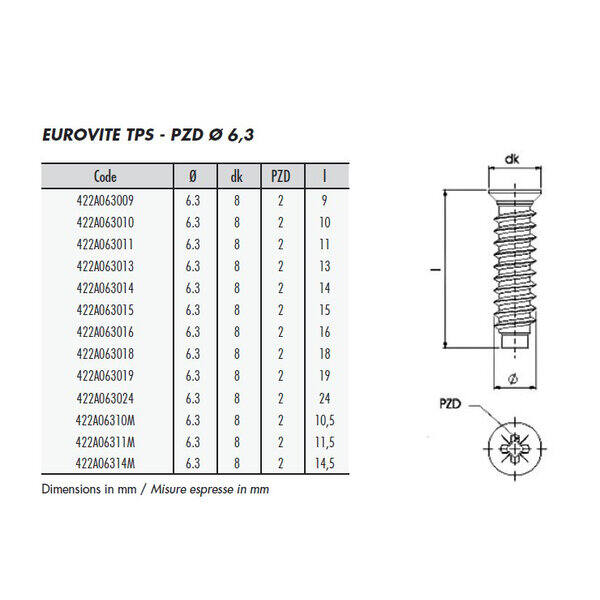 Vite TPS Ø6,3 x 13 CE Piana - ZINCATA